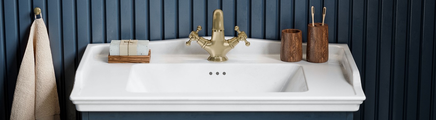 Discover Calpyso's huge choice of bathroom furnishings - from basins and WCs to taps and mirrors. Many of our basins and WC pans are designed to work in 'families' to allow you to truly create a cohesive look in your bathroom. Accessories such as taps and handles, available in a wide range of finishes from classic chrome to traditional brushed brass can elevate the look of your space and take it to the next level.