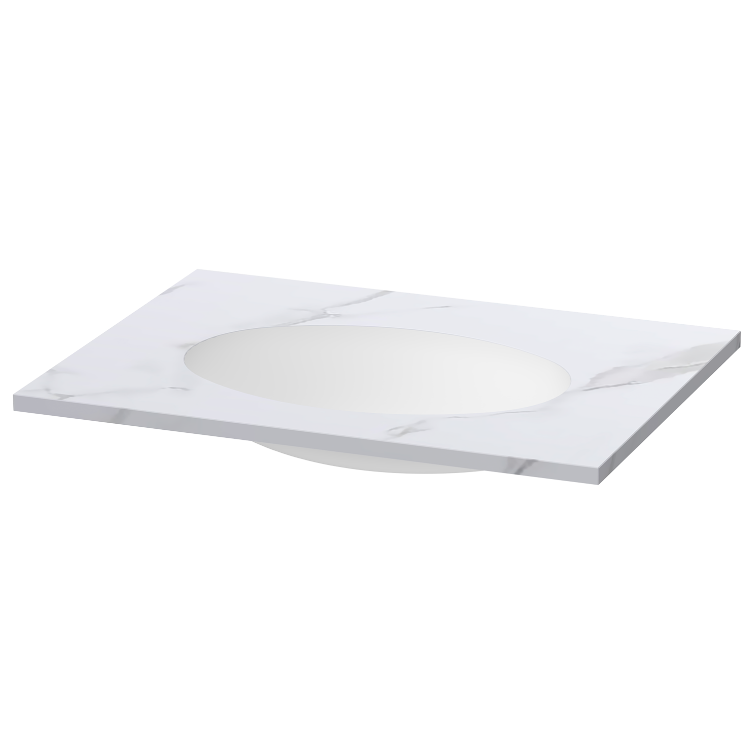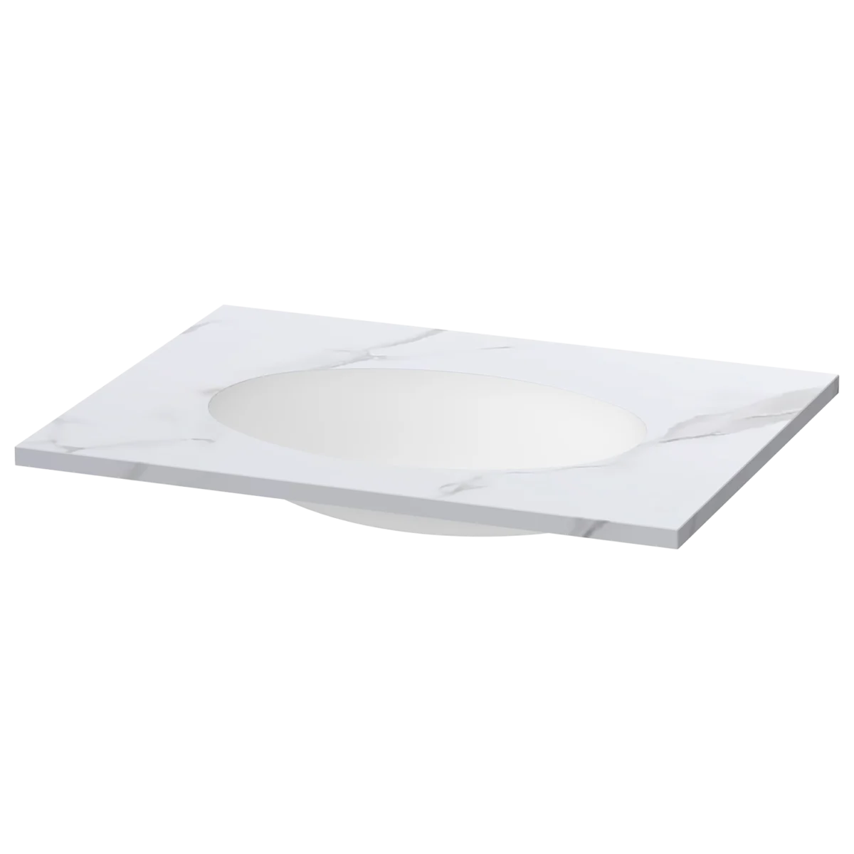 This Calypstone undermount worktop provides a clear and practical washing surface in Cirrus White. The basin sits beneath the top to create a smooth transition and an easy-clean surface. The matt Calypstone material replicates the calm,marble-like appearance of natural stone while maintaining a consistent finish.