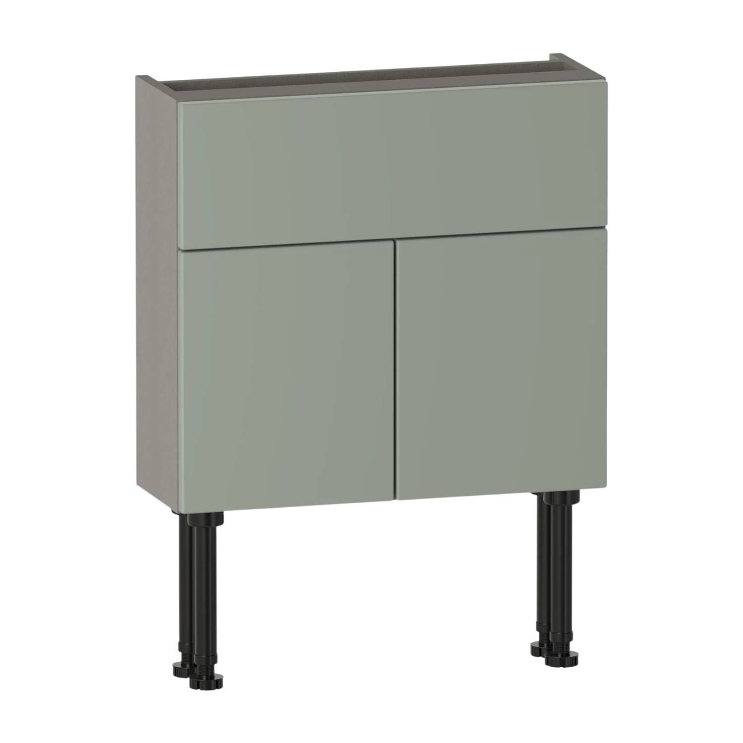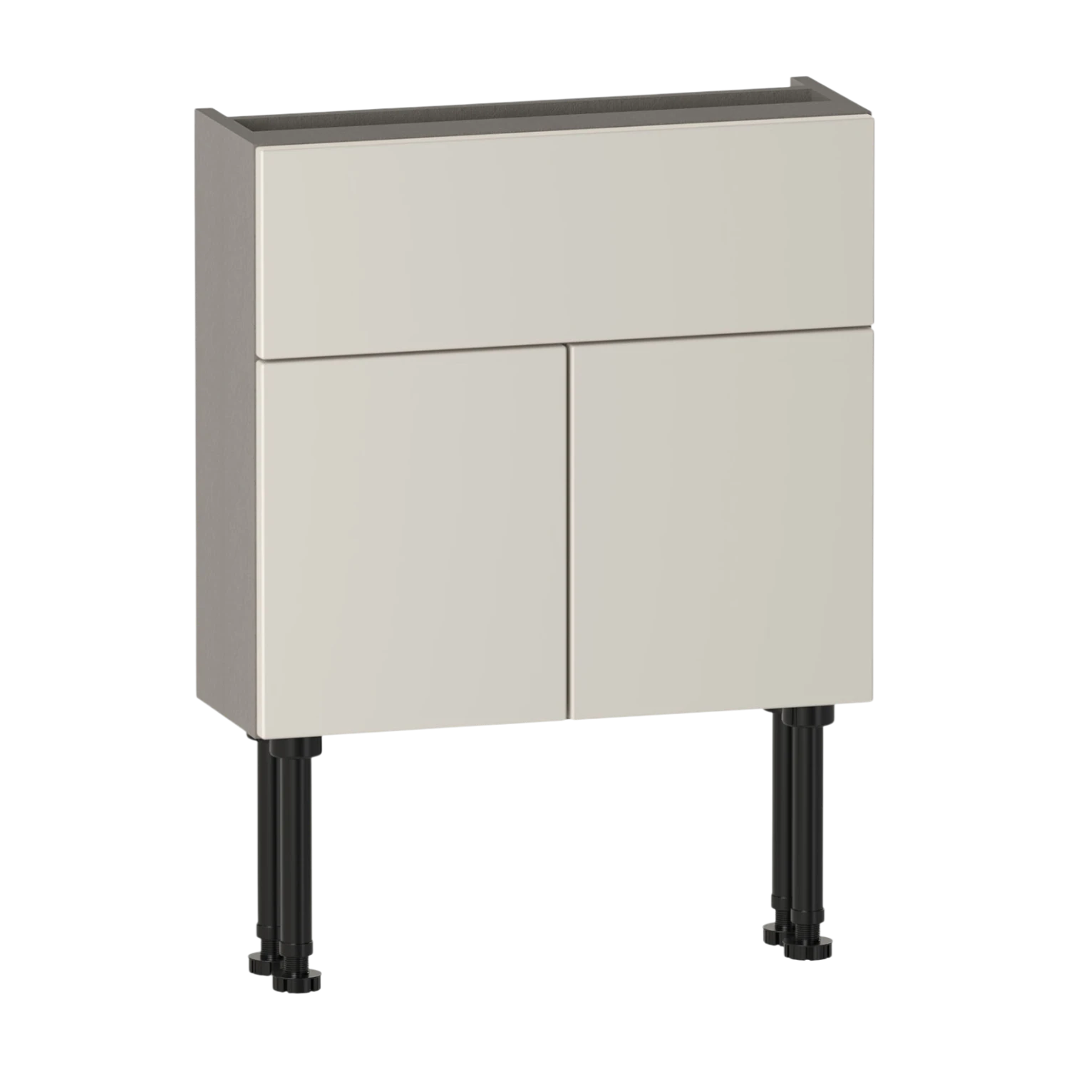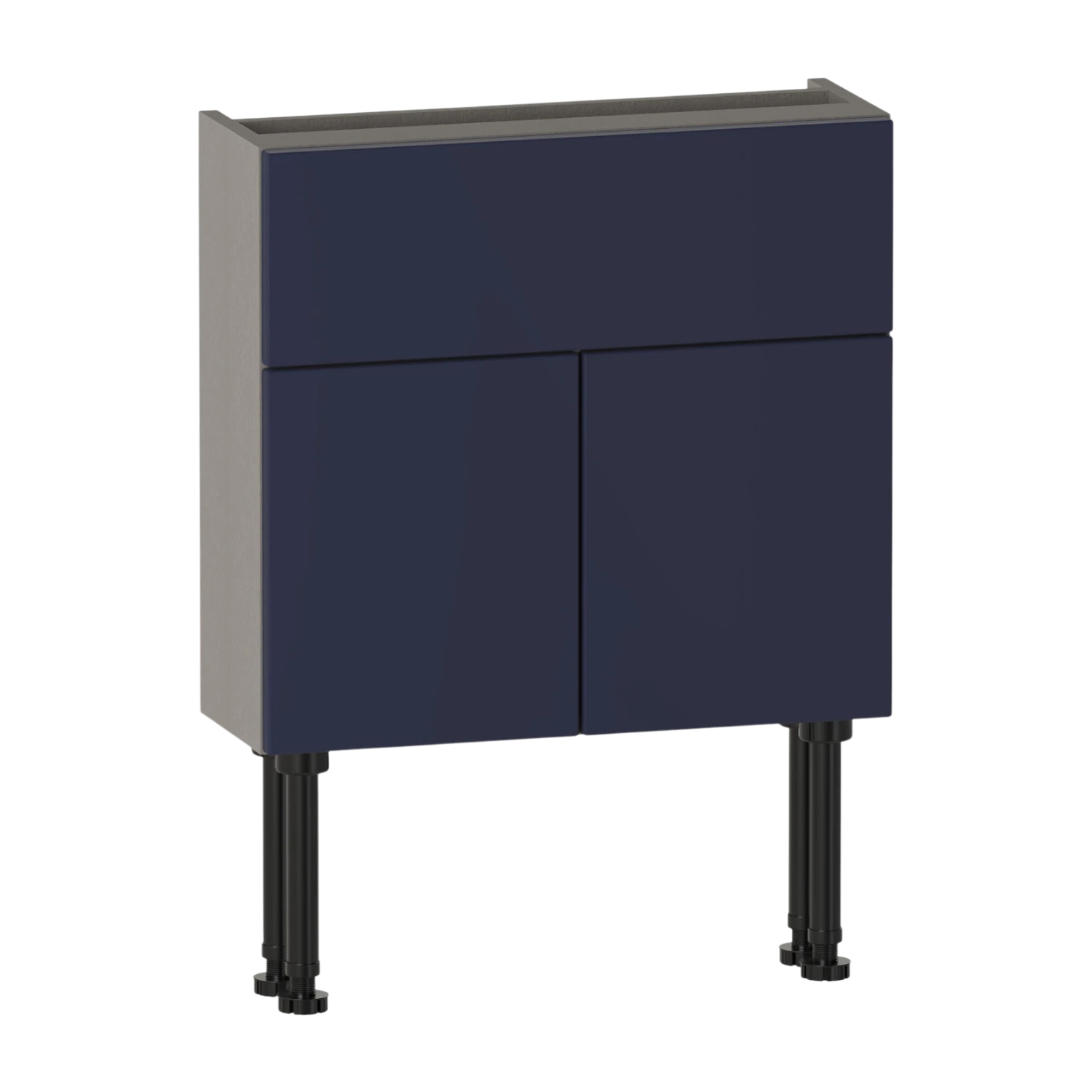 The Brecon 600 slim two door basin unit features two soft-close doors and an internal shelf for practical storage. A fixed upper panel includes a 50mm rear service gap to allow for pipework. Constructed from high quality furniture board for reliable everyday use,the carcass is supplied assembled for straightforward installation. Pair with a basin to complete the unit. This unit has a 561 height carcass to allow you to conceal additional pipework beneath the unit,or it can be wall hung using the included wall fixing kit.