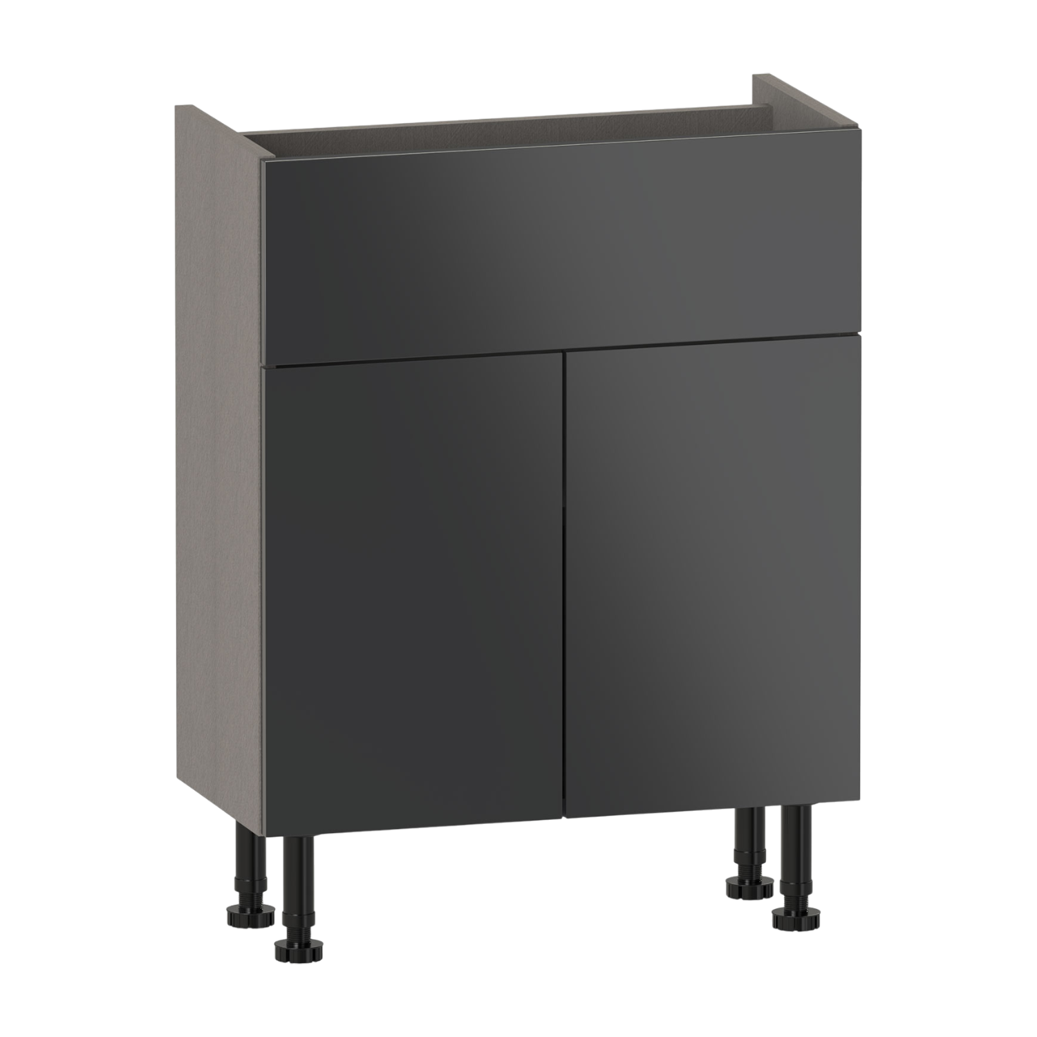 The Cheviot 600 two door basin unit features two soft-close doors and an internal shelf for practical storage. A fixed upper panel includes a 50mm rear service gap to allow for pipework. Constructed from high quality furniture board for reliable everyday use,the carcass is supplied assembled for straightforward installation. Pair with a basin to complete the unit.