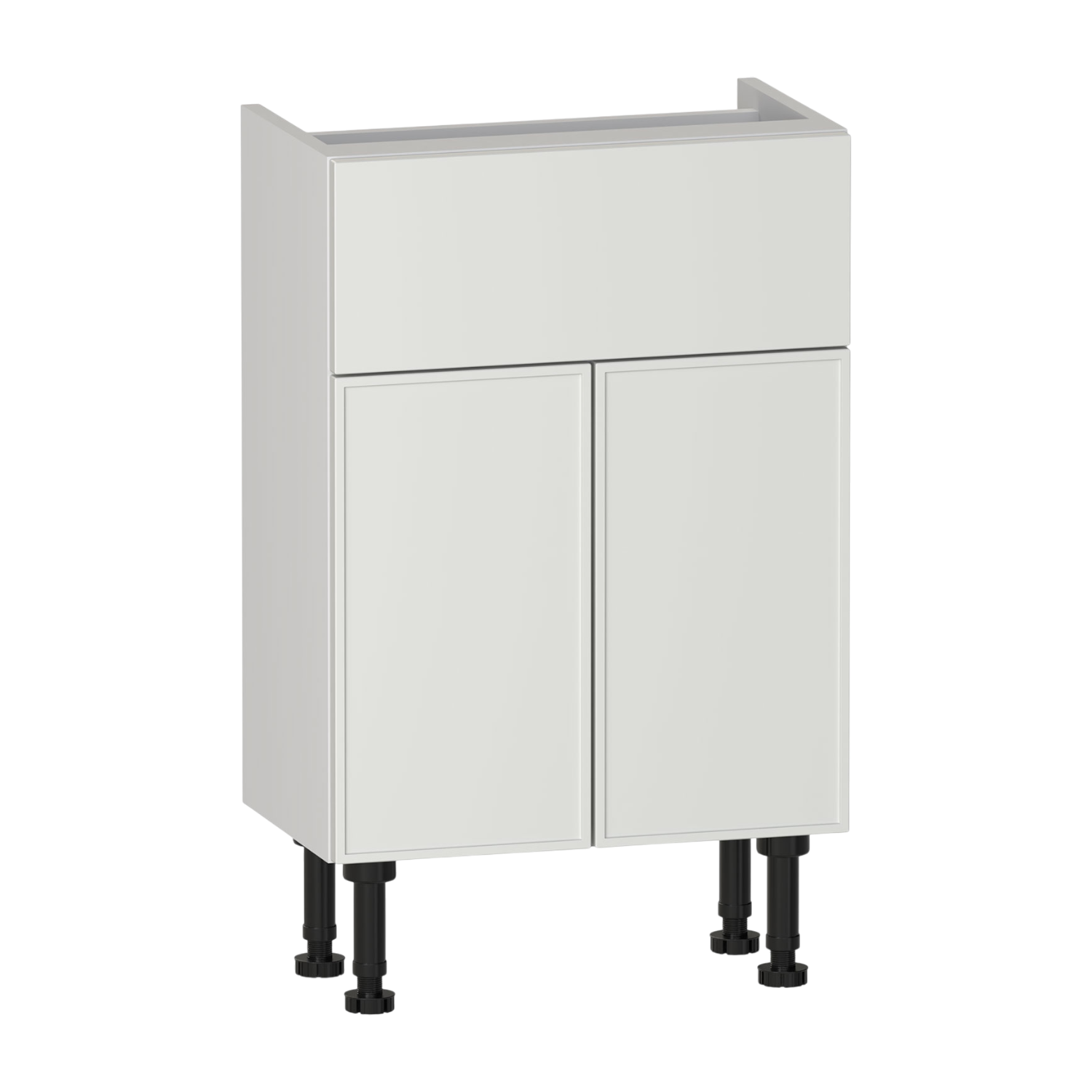 The Dartmoor 500 two door basin unit features two soft-close doors and an internal shelf for practical storage. A fixed upper panel includes a 50mm rear service gap to allow for pipework. Constructed from high quality furniture board for reliable everyday use,the carcass is supplied assembled for straightforward installation. Pair with a basin to complete the unit.