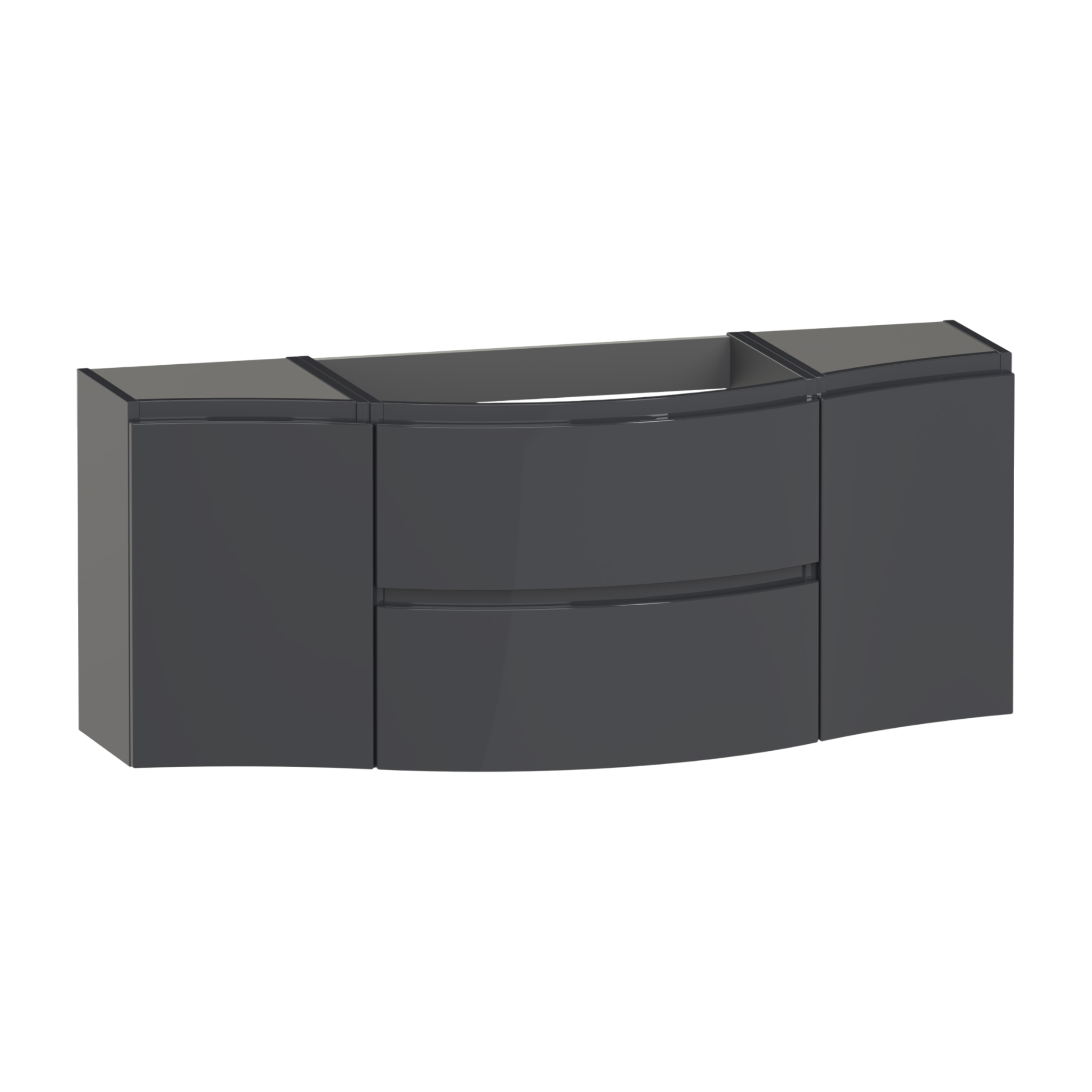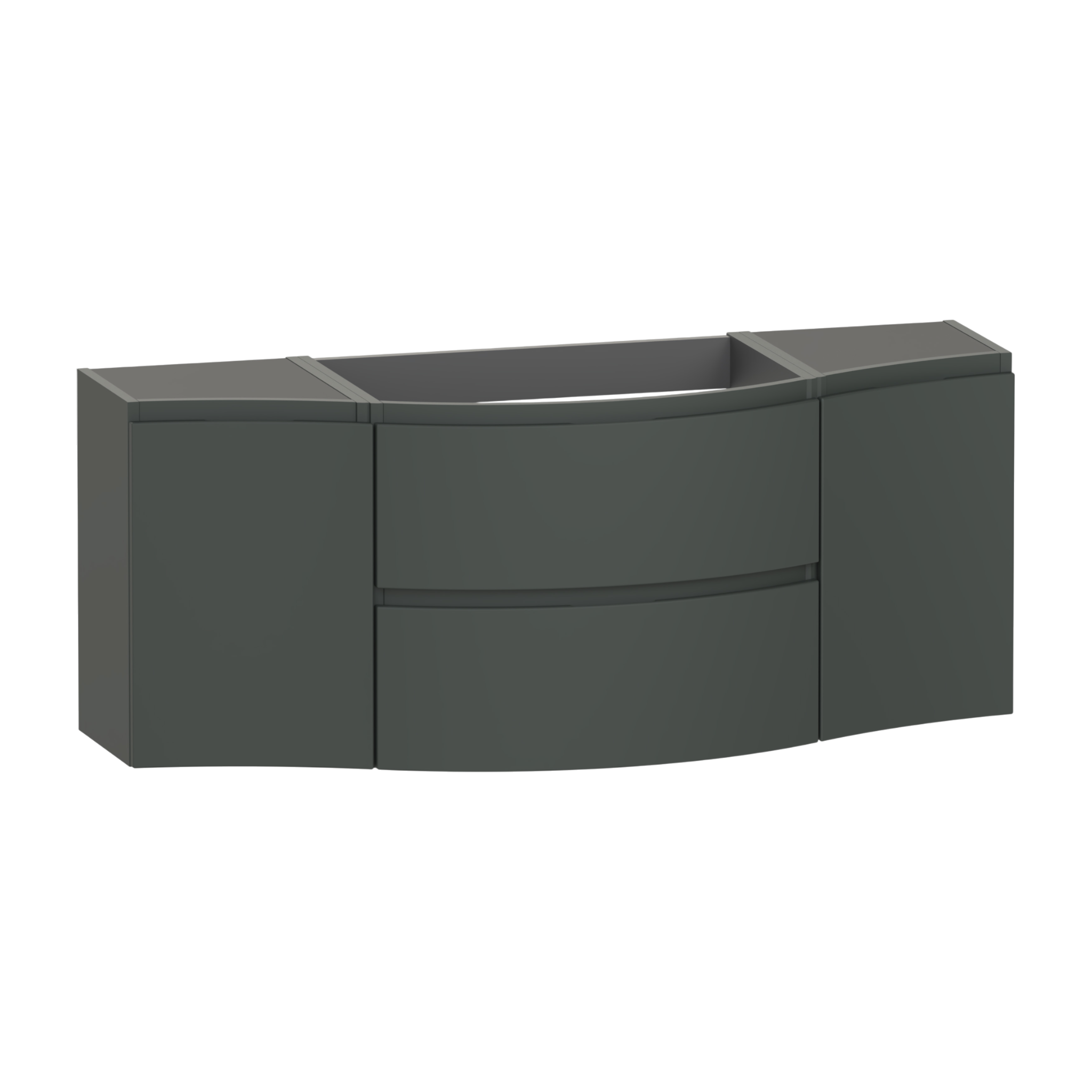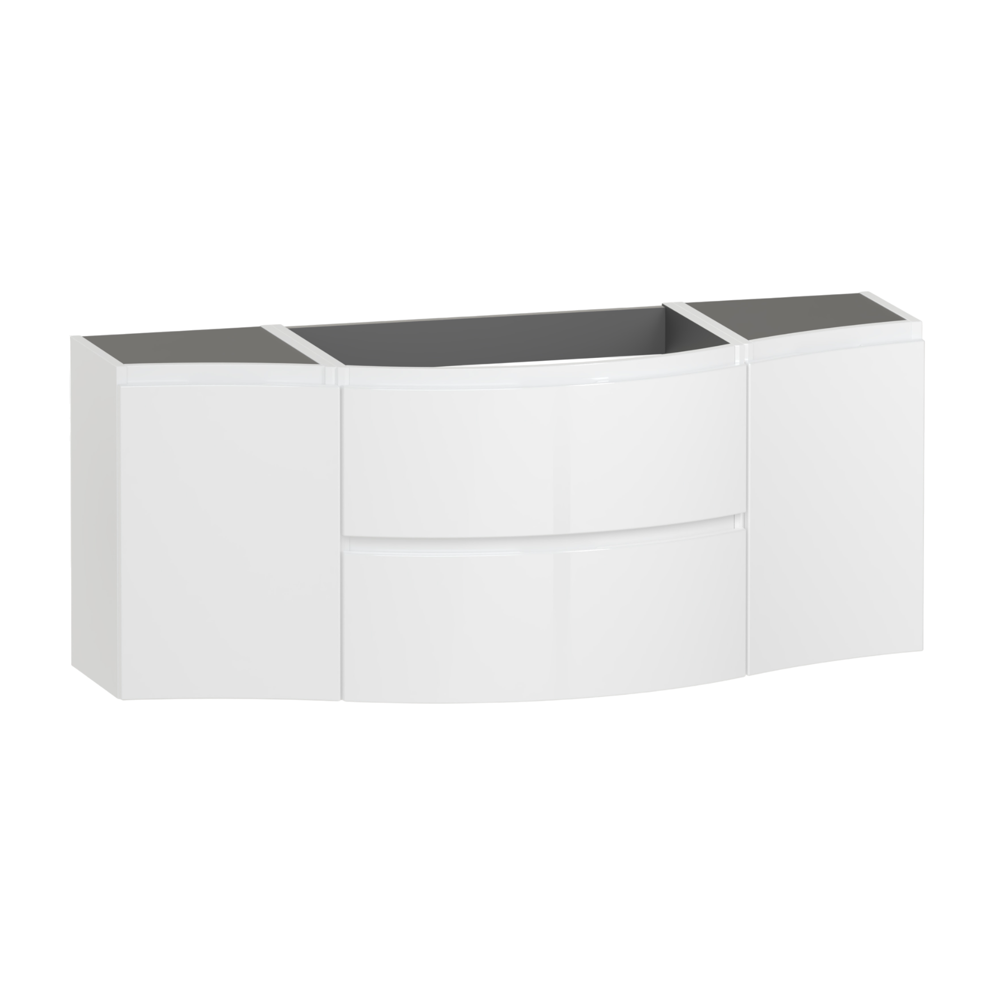 The Levanto 1375 double wing vanity combines generous storage with elegant simplicity,designed to make daily routines effortless. Two soft close drawers glide smoothly to hold everyday items neatly,while the double cupboards offers additional space for taller essentials. Its integrated handles and wall hung design create a light,floating effect that opens up the room. Designed for a centre bowl wing basin,or a double wing Levanto worktop and a sit-on bowl.