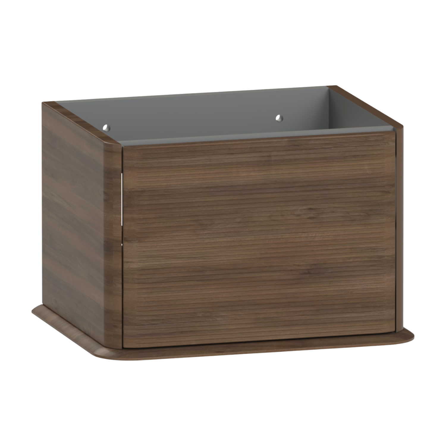 Bring mid-century charm to your space with the Petra 645 wall hung vanity unit. A single,large soft-close drawer gives you ample space for all of your essential items. The fluted fascia adds subtle texture,while the wall mounted design keeps floor space clear. Crafted from 18mm furniture board for long-lasting strength and durability. This unit can be paired with optional decorative legs giving you a choice of looks. Combine this vanity with vanity worktop and sit-on bowl,or with a worktop with undermount basin for a truly traditional feel.
