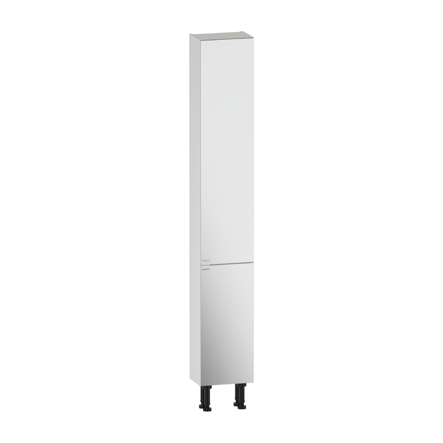 The Selter 300 mirrored full door high rise unit features two soft-close,reversible mirror doors covering the whole of the unit,concealing mixed internal shelving for organised storage. Its slim depth offers practical storage while keeping the unit footprint to a minimum. Built from durable furniture board for dependable everyday use. The carcass comes supplied assembled for easy installation.