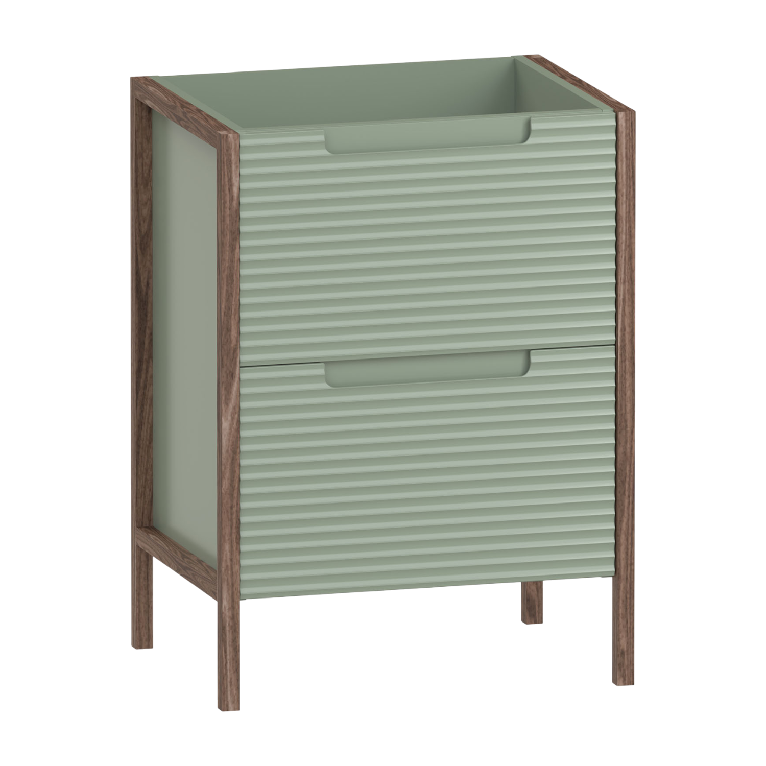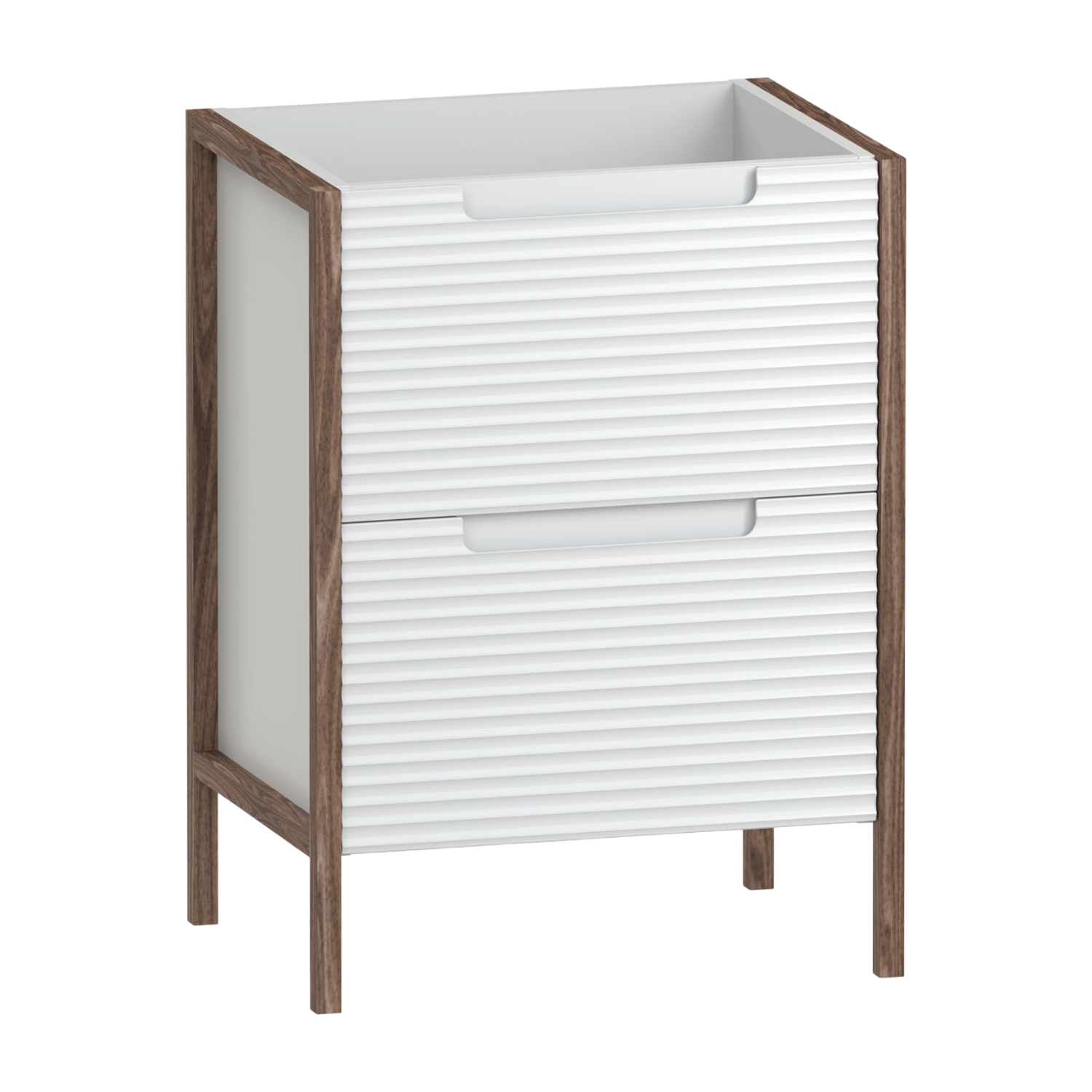 The Valor 600 two drawer vanity unit pairs warm walnut tones with subtle fluted detailing for a balanced,contemporary look. An integrated handle keeps the design clean,while two soft close drawers provide smooth,quiet storage. Internal dividers help keep essentials organised and easy to access. Built for everyday use,it offers practical function with a timeless finish. Pair with a vanity basin or a worktop and sit-on bowl for a choice of styles.