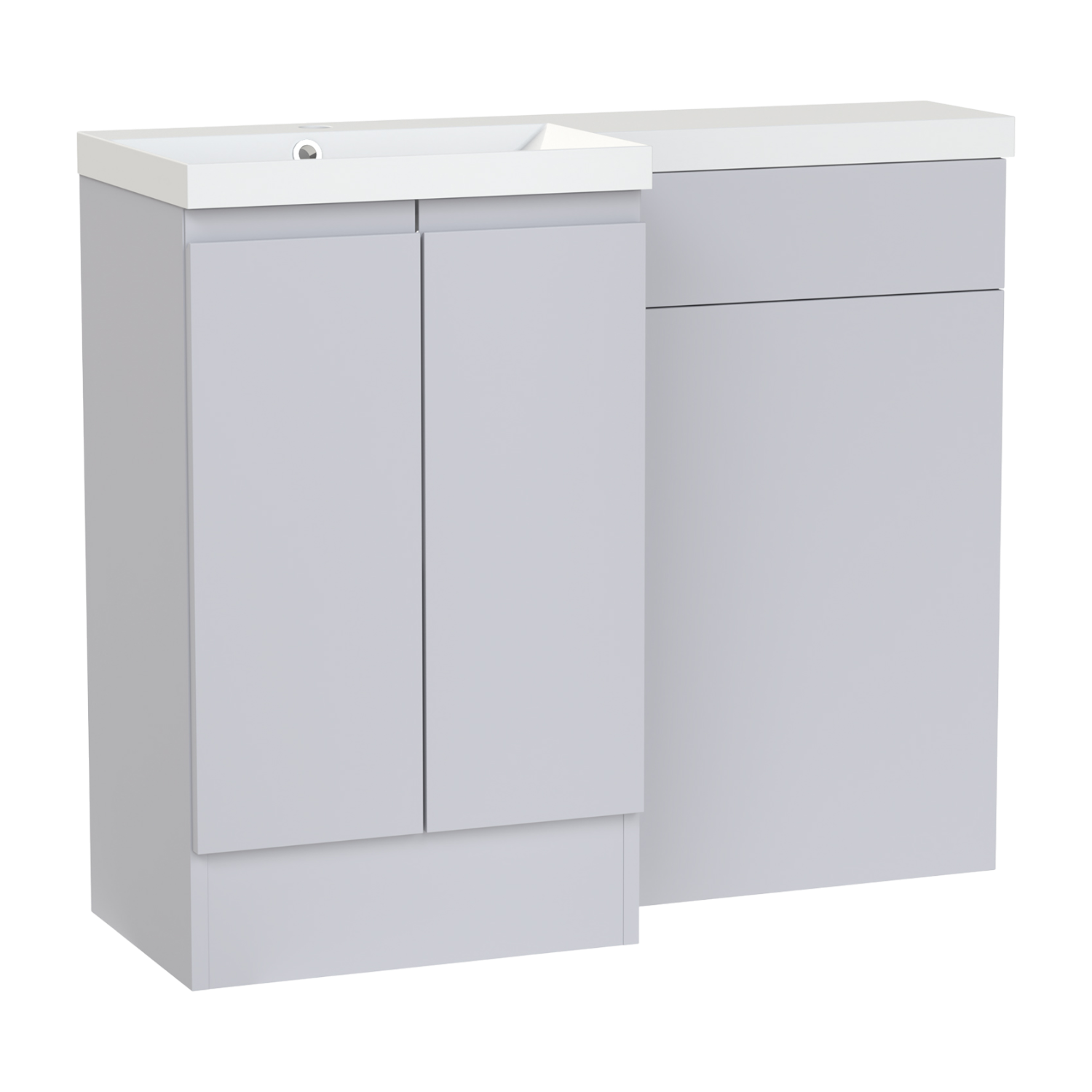 The Veneto 1010 vanity set combines the basin and WC units in one clean,coordinated design. Its smooth slab fascias and soft close doors create a simple,modern look suited to a wide range of bathrooms. Made from high quality furniture board,it provides practical concealed storage to keep the space tidy. With the basin positioned to the left,the layout offers a balanced and efficient solution for contemporary bathrooms. This set includes the Modena cast wing basin.