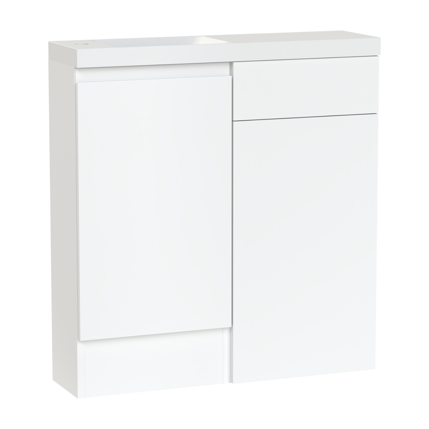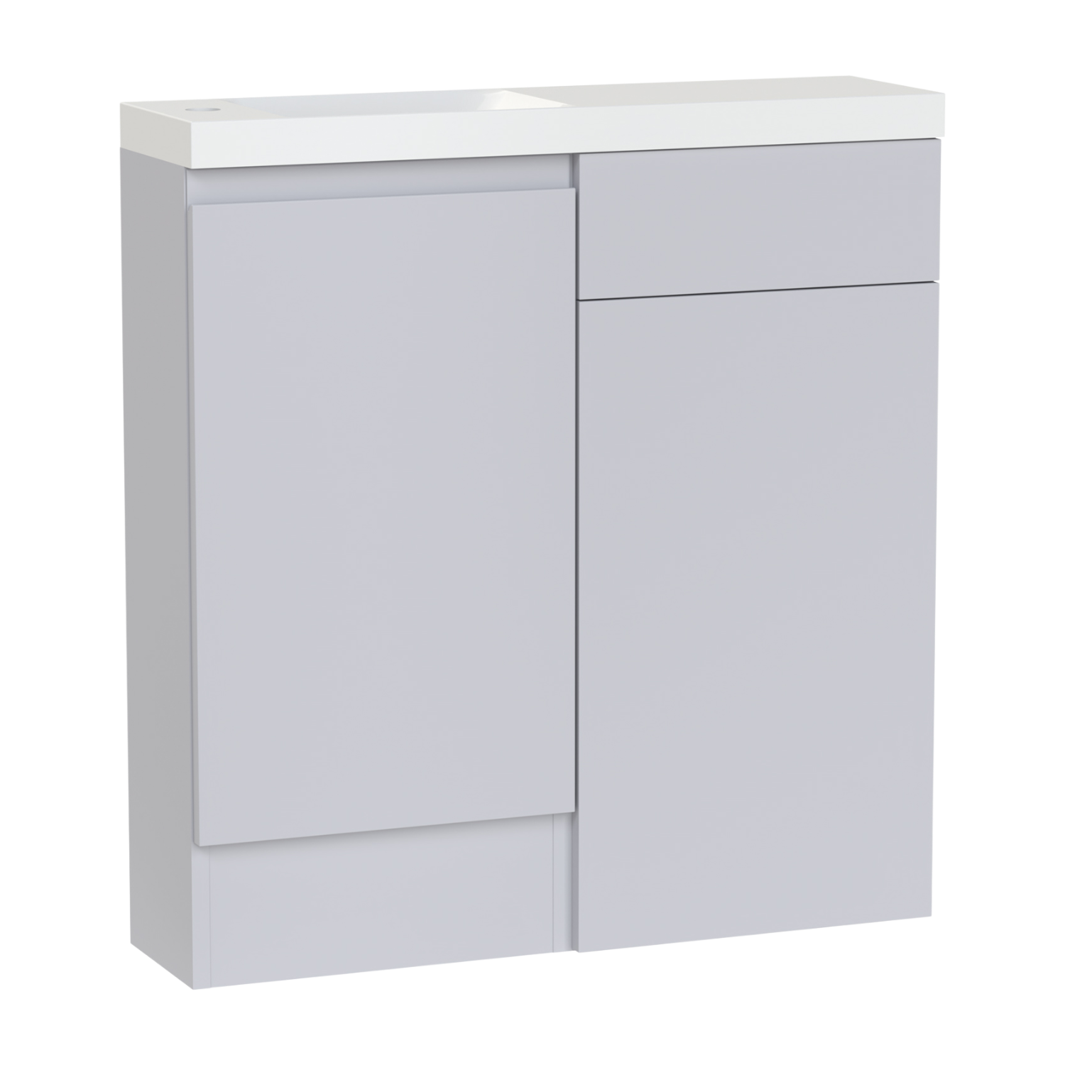 The Veneto 800 vanity set combines a sleek basin and WC unit for a unified,space-saving solution. Its soft close door ensures quiet ease,while the smooth slab fascia lends a timeless,contemporary feel. Crafted from high quality furniture board,this bathroom vanity unit offers lasting durability and effortless maintenance. With the basin positioned to the left,it provides practical balance in smaller bathrooms or ensuite spaces without compromising on style. This set includes the Modena 800 compact basin.