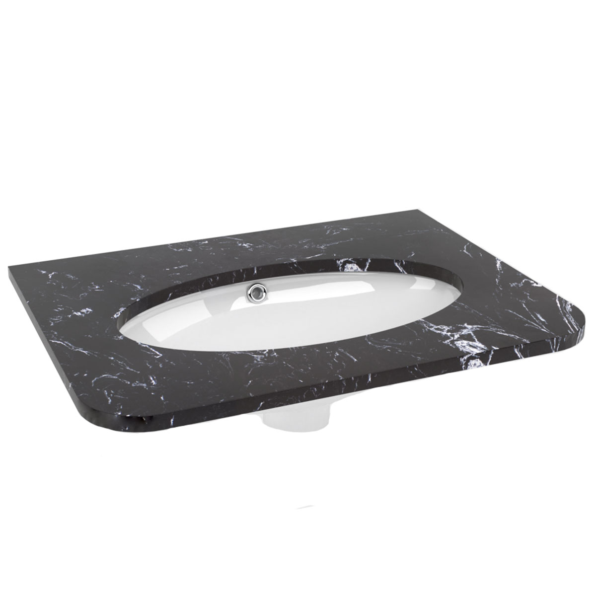 Solid Surface Upstand 974 x 80 x 12mm in Nero Marquina, designed to complement Solid Surface vanity worktops and undermount basins, helps to provide a clean and sealed junction between unit and wall. It aids in preventing water from seeping behind the unit, protecting your walls, whilst offering a traditional, clean-lined look that complements your bathroom.